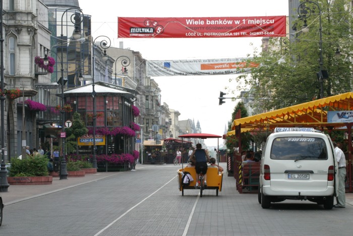 I didn’t even know you could love a city. Lodz always seemed grim and boring to me but I met the inhabitants of Lodz who are in love with their city. What is so special about Lodz? Cartainly the city’s location in the center of Poland. Can say that it is close to everywhere to the sea, to the mountais, to the East and West. Lodz is a city of one street and everyone knows her this is Piotrkowska street, it’s teh main street with several decoratove Art Nouveau tenement houses. This is a street where crowds of pedestrians strolled althought nothing can be bought there becouse most shops went bankrupt from increasingly expensive rents. Only in summer the street takes on a colorful character the restaurant gardens are blooming on the street and vacant strollers can get drunk with various alcohols.