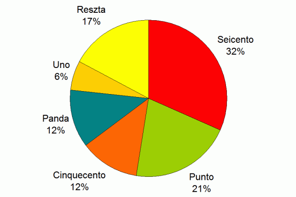 We see from the chart that over 1/4 of all Fiat models met is Seicento. When we combine the number of all small-sized models, we get data indicating that more than half of the market on the market (56%) are “miniature” cars. Referring to history, it can be said that Fiat still remains the leader in the production of small cars and at least this is on the Polish market.