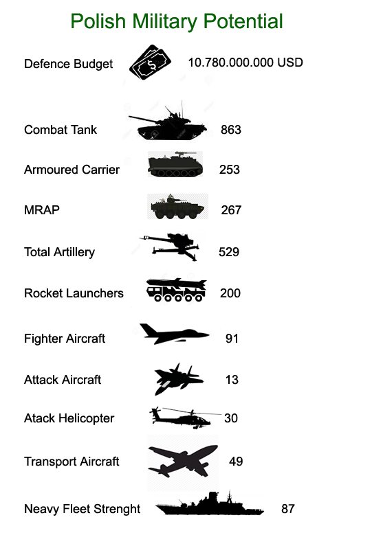 Let’s look at Polish military potential (these are the estimates because nowhere in Polish official media I have not found):