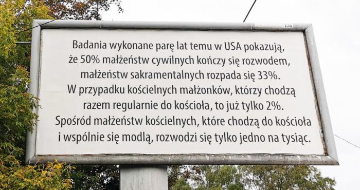 Again, in Poland, boards with advertising are replaced by mysterious religious content. The content of the inscription is this: